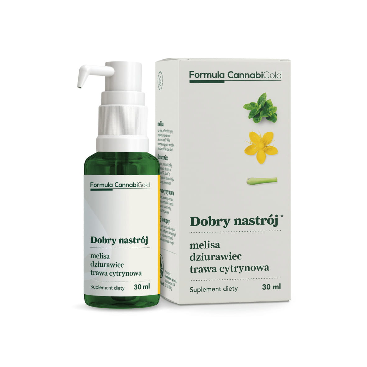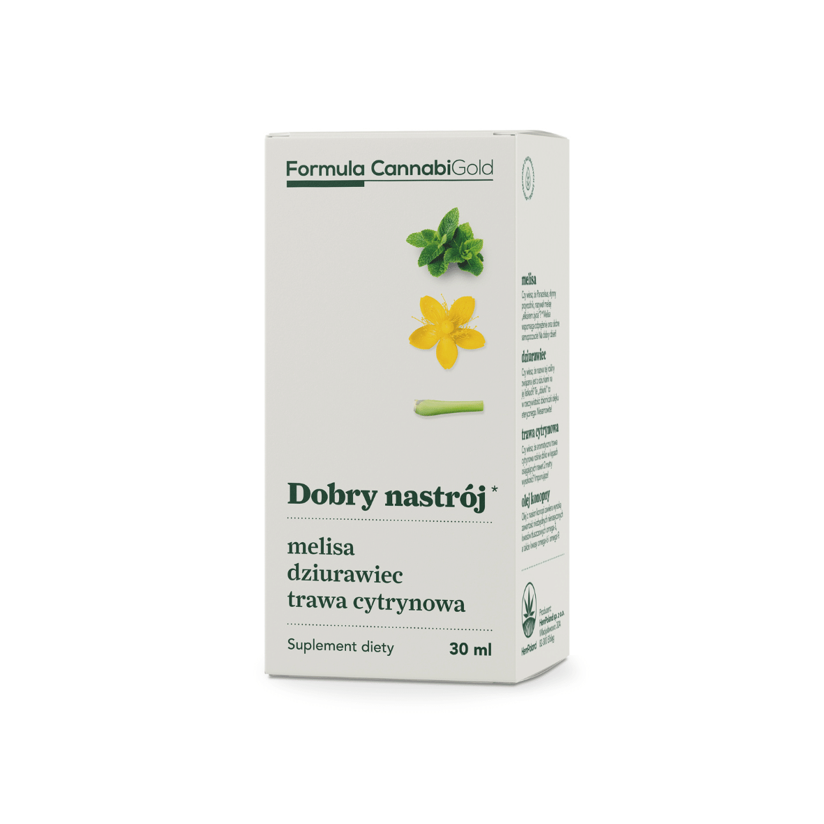 Olejek Formula CannabiGold „Dobry nastrój” to wieloskładnikowy suplement diety w oleju z nasion konopi. W formule olejku znajdziecie takie składniki roślinne jak melisa, dziurawiec czy trawa cytrynowa. Potrzebowaliśmy aż 100 kg melisy aby wytworzyć 1 kg jej ekstraktu. Produkowane w całości w Polsce pod pełną kontrolą firmy HemPoland suplementy diety marki Formula CannabiGold to gwarancja najwyższej jakości. Produkty Formula CannabiGold zostały stworzone zgodnie z zasadą „clean label” – najprostszy skład, bez zbędnych dodatków. W produkcie odnajdziesz 100% składników z naturalnych źródeł.